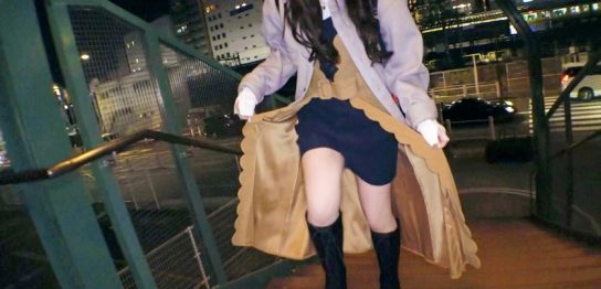 夜のオフィス街で待ち合わせ!ビル風が寒い寒い!待たせちゃってすみません!今回のヒロインのゆなちゃん!22歳の受付嬢で、4